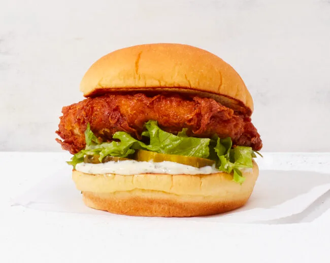 Chicken thigh or breast topped with pickles, butter milk herbs mayo and lettuce…… 550 Calories
